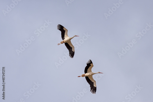 Obraz premium Spring migration of storks in the Rhone Valley