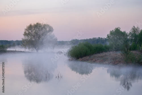 © Александр Арендарь, Fototapeta premium spring morning mist over the river