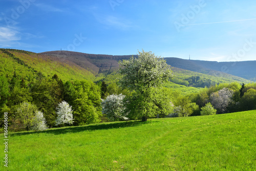 © meryll, Obraz premium Spring mountain green grass nature trees, White Carpathiens, Velka Javorina