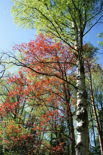 © valerijs, Fototapeta premium Spring.Multicolored paints of mixed forests of Latvia.