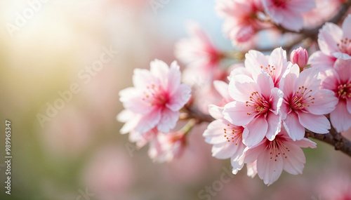 Fototapeta premium Spring Nature Seasonal Background with Colorful Flowers and Bright Sunny Sky