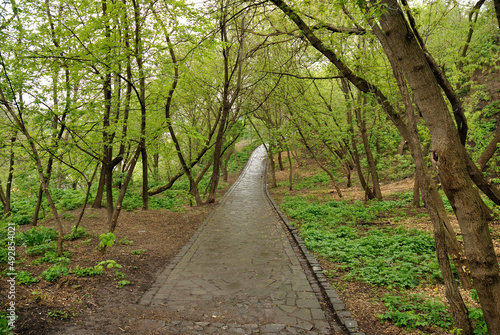 © Svitlana, Fototapeta premium Spring nature tree trail in the park