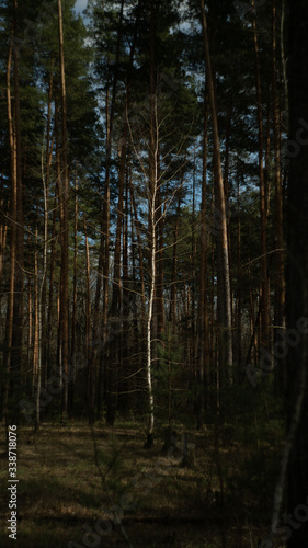 Fototapeta premium spring nature trees blooming flowers pine lake Russia middle lane water...