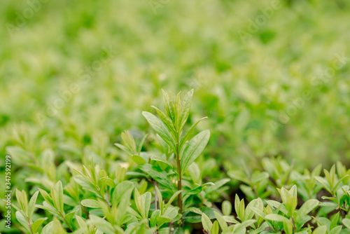 Obraz premium Spring or summer abstract season nature background with grass and bokeh. shrub border