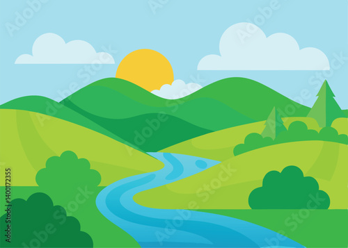 © Promela Rani, Fototapeta premium spring or summer landscape with field green hills