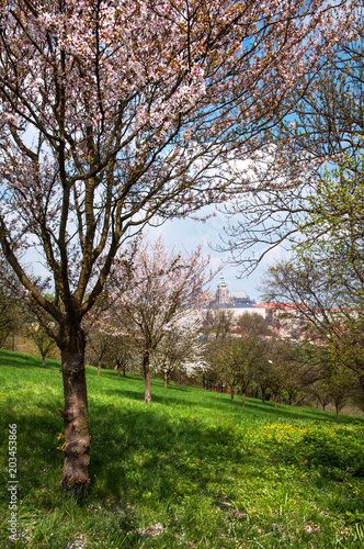 Fototapeta premium Spring Orchards And St Vitus Cathedral. Prague