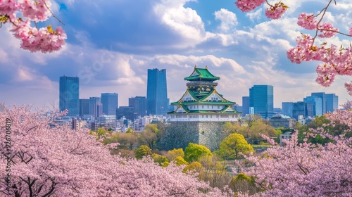© Togrul, Fototapeta premium Spring Osaka skyline at castle and park.