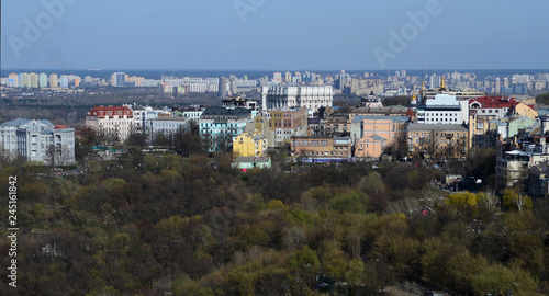 © Nataliia, Fototapeta premium Spring panorama of Kiev skyline from a bird's-eye view
