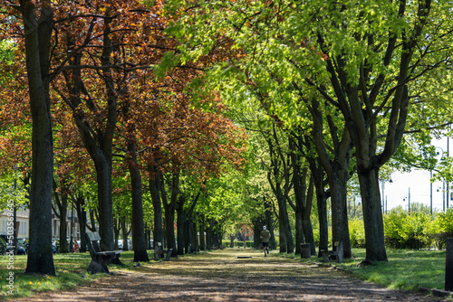 © Przemysaw, Fototapeta premium Spring Park Avenue is a good place for a morning jog