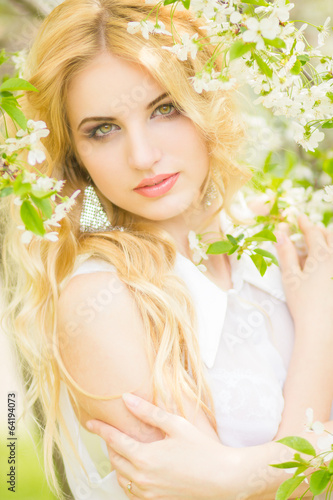© yevgeniya131988, Fototapeta premium Spring portrait of a beautiful young blonde