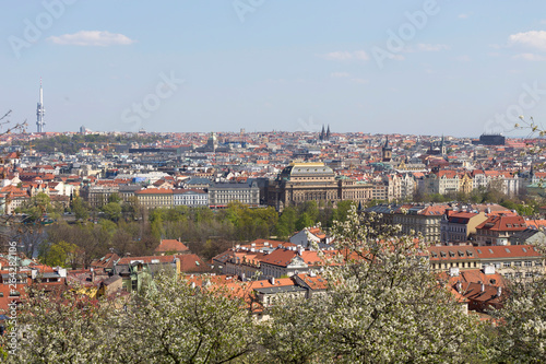 Obraz premium Spring Prague City with the green Nature and flowering Trees, Czech Republic