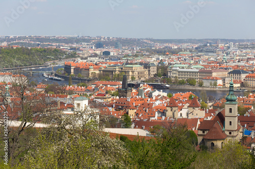 Obraz premium Spring Prague City with the green Nature and flowering Trees, Czech Republic