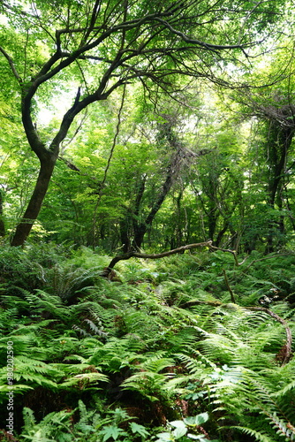 © SooHyun, Fototapeta premium spring primeval forest with ferns and mossy trees