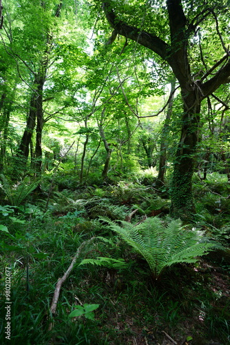 © SooHyun, Fototapeta premium spring primeval forest with ferns and mossy trees