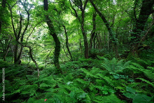 © SooHyun, Fototapeta premium spring primeval forest with fresh ferns and old trees