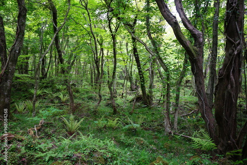 © SooHyun, Fototapeta premium spring primeval forest with mossy old trees and fresh ferns