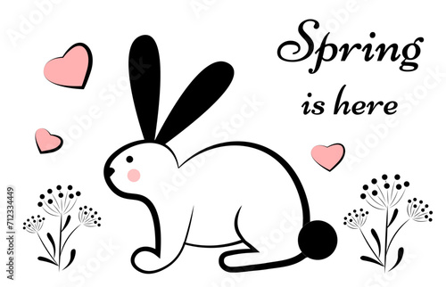 © Bovart, Obraz premium Spring rabbit among flowers. Doodle