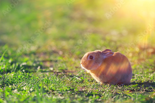 © kichigin19, Obraz premium spring rabbit in a green field, easter symbol, beautiful april easter background