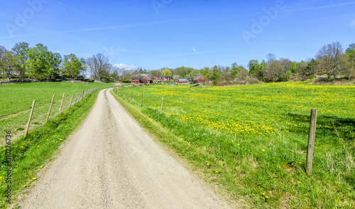 Fototapeta premium Spring road to the Swedish farm
