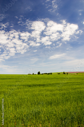 © petr84, Fototapeta premium Spring rural landscape with green grass and blue sky