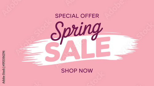 Obraz premium Spring sale special offer shop now text on pink background