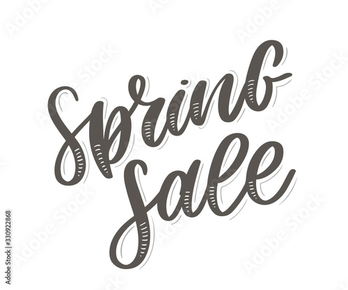 © 1emonkey, Fototapeta premium Spring Sale Word Hanging on Leaves with Strings. Vector Illustration flowers