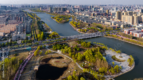 Fototapeta premium Spring scenery of Yitong River in Changchun, China