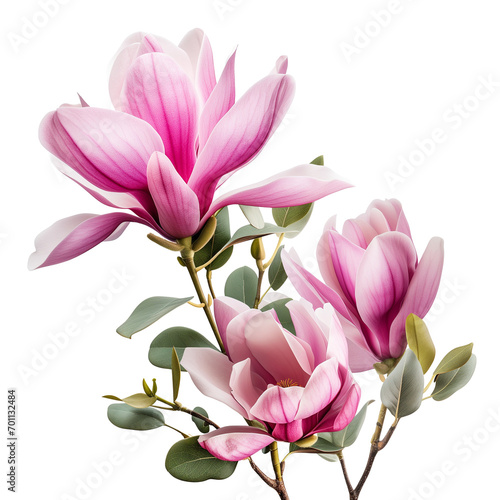 © MDNANNU, Fototapeta premium Spring season pink magnolia flowers with eucalyptus leaves.