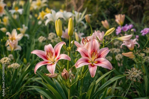 © The 2R Artificiality, Fototapeta premium Spring-Season Planted Pink Oriental Lily Bulbs