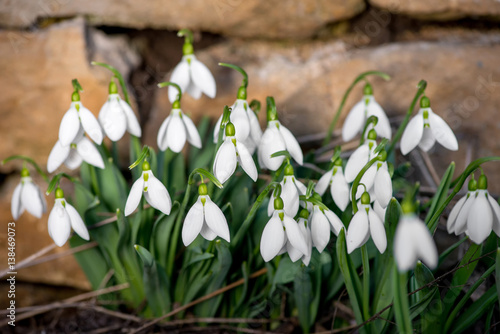 © diyanadimitrova, Fototapeta premium Spring snowdrop flowers blooming in sunny day