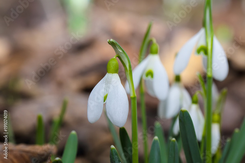 Fototapeta premium Spring snowdrop flowers blooming in sunny day