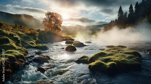 © vectorwin, Obraz premium spring steaming water