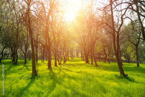 Obraz premium spring sunrise in the orchard