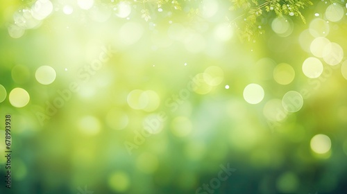 Fototapeta premium Spring-Themed Abstract Banner with Green Blurred Bokeh Lights.