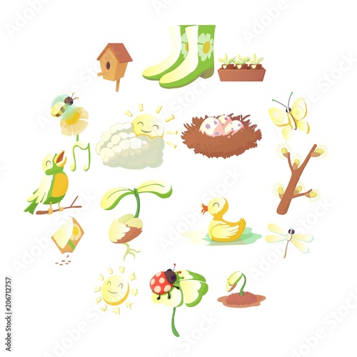 Naklejka premium Spring things icons set. Cartoon illustration of 16 spring things vector icons for web