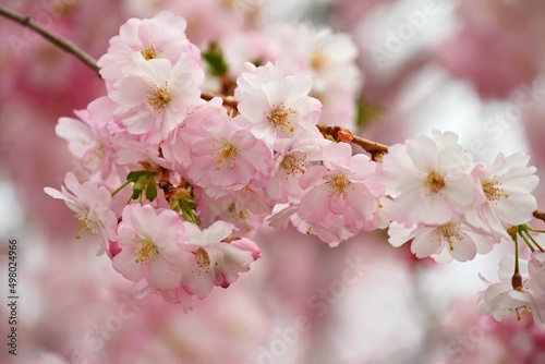 © montypeter, Obraz premium Spring time. Beautiful flowering tree. Spring in nature and colorful background. Japanese cherry - Sakura.