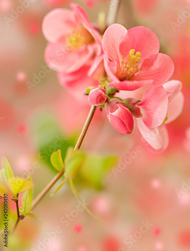 © COLOR PHOTO, Obraz premium Spring time. Blooming pink branches. Macro, blur effect and selective focus