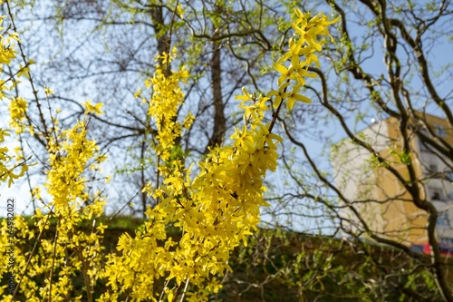 Fototapeta premium Spring tree flowering - Forsythia flower. Slovakia