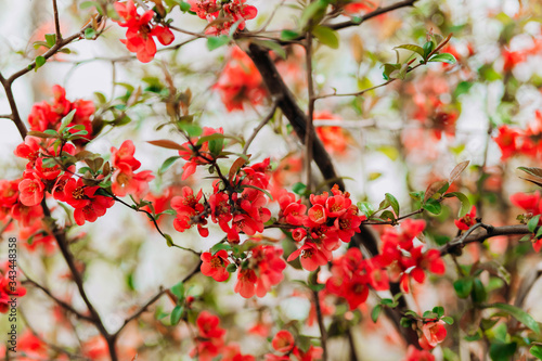 © Yuliia, Obraz premium Spring tree,.pink and red blossom closeup