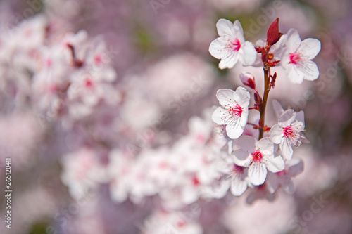 © talook, Obraz premium Spring. Tree with flowers, bee and butterfly
