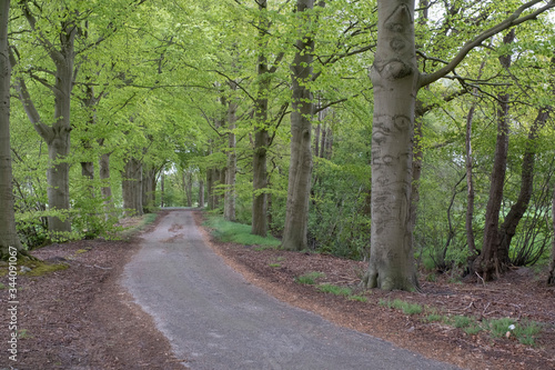 © Dasya - Dasya, Fototapeta premium Spring trees with green spring leaves, small road. Backgrounds