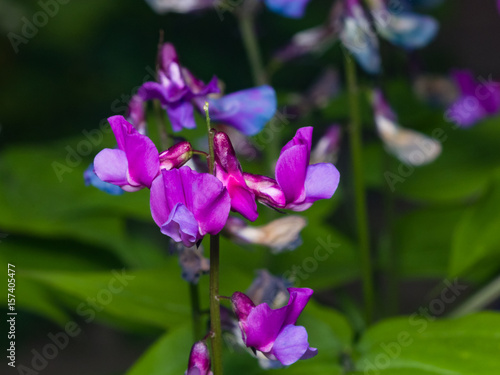 Obraz premium Spring vetchling or Lathyrus vernus flowers macro, selective focus, shallow DOF