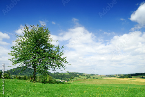 Obraz premium Spring view, lonely tree among green fields