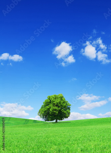 © Trutta, Obraz premium Spring view, lonely tree among green fields