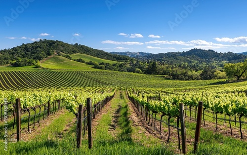 © Svitlana, Fototapeta premium Spring Vineyard With Fresh Green Leaves