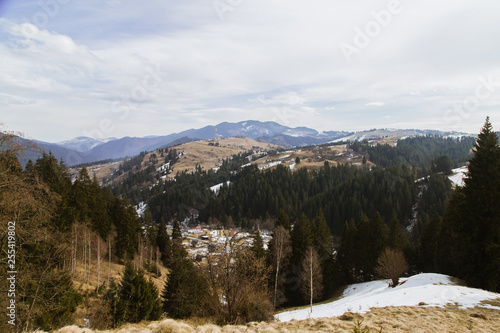 Fototapeta premium Spring vs winter landscape in the Carpathian mountains