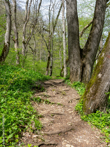 © NAIL BATTALOV, Obraz premium Spring walks in nature on a dirt road leading to the forest.