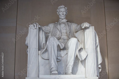 © alexhitrov, Fototapeta premium Spring, 2016 - Washington DC, USA - Close-up. A clean statue of 16 US President Abraham Lincoln at the Lincoln Memorial in Washington DC without tourists