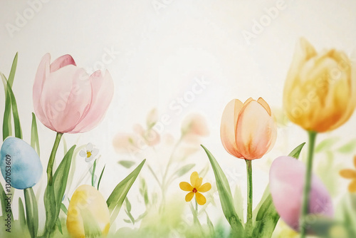 © VetalStock, Fototapeta premium spring watercolor background with tulips