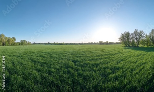 © Alchemist, Obraz premium Spring Wheat Field Under Clear Sky